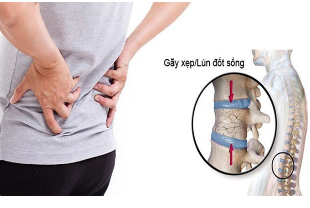 - Gù vẹo cột sống, giảm chiều cao so với lúc trẻ (do các đốt sống bị lún, xẹp hoặc bị gãy lún).